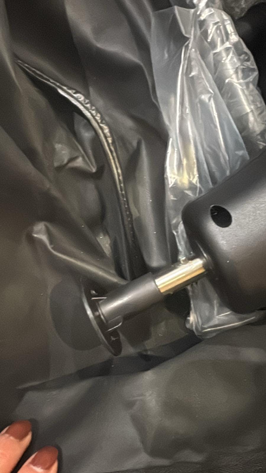 The item shown in your images is simply part of the packaging, designed to prevent the axle from protruding through the side of the box during transit. We take great care to ensure our trolleys are packed exceptionally well so they arrive safely.